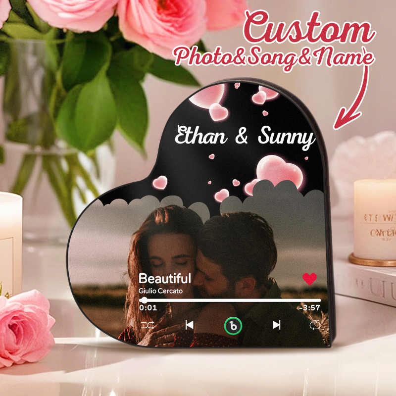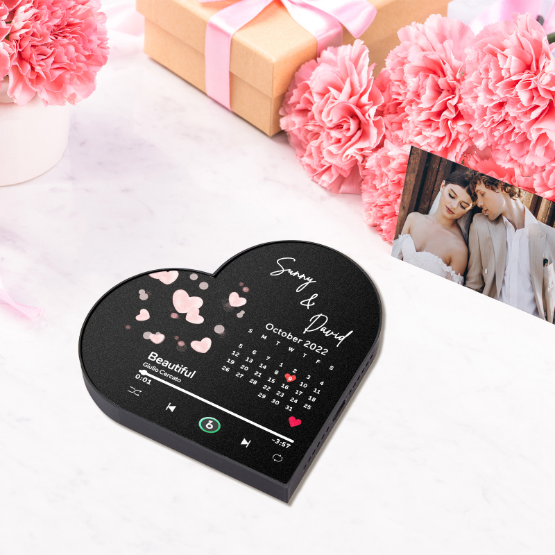 Custom Heart Music Box Fridge Magnet with Photo Frame - Unique Couples Keepsake