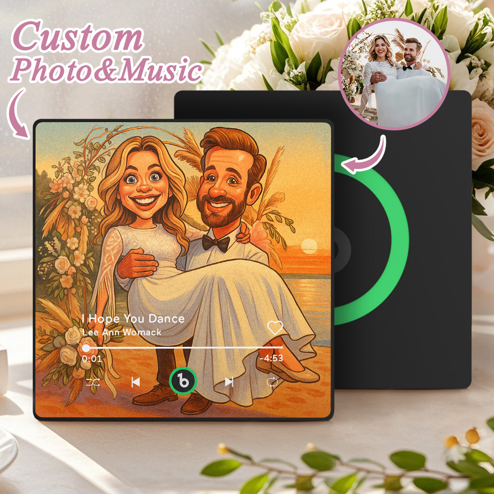 Custom Music Fridge Magnet Personalized Photo Various Cartoon Style Song Fridge Magnet That Can Play Songs Wedding Gifts Anniversary Gifts for Couple