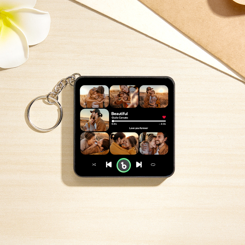 Custom Music & Multi Photo Mini Fridge Magnet Keychain Photo Collage Fridge Magnet Personalized Photo Song Magnet That Can Play Music Keyring Gifts Anniversary Gift for Couple