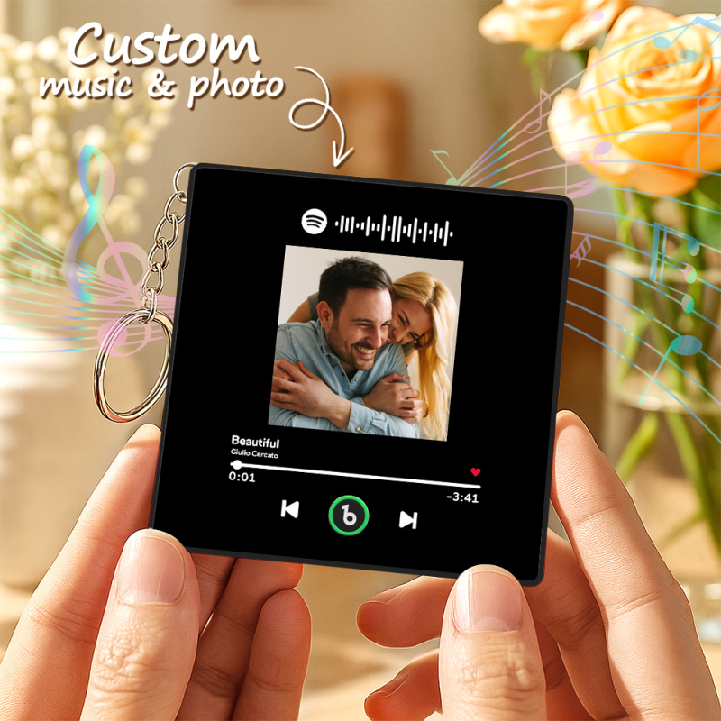 Personalized Photo Music Keychain Album Box Package Charm, Ready To Play Music Anniversary Gift